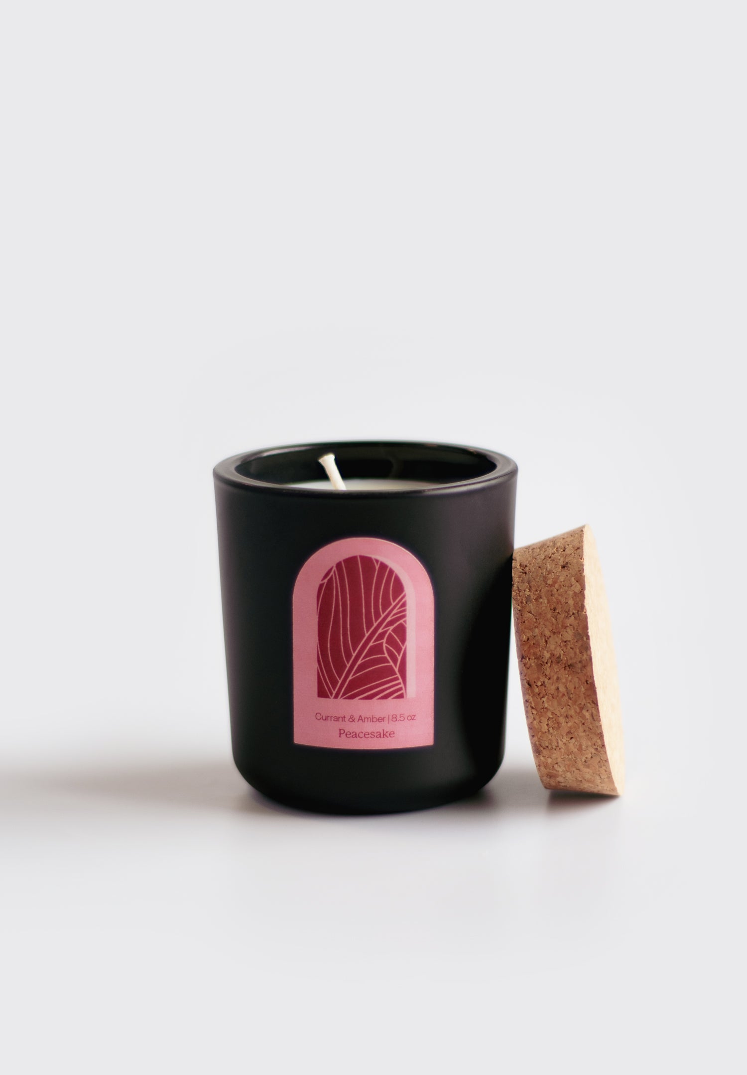 Hand-poured into a heavy black-matte glass vessel and finished with a natural cork top. This candle offers a soothing and graceful glow.
